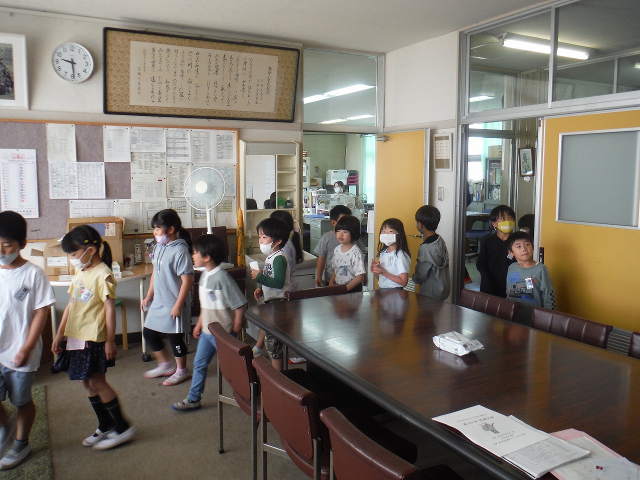 1,2年生:校長室にも来てくれました。「校長先生、ここに住んでるの?」「住んでません…」